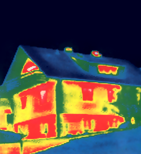 Die thermografische Aufnahme zeigt deutlich, dass bautechnische Schwachstellen, wie Wärmebrücken, durch die Wärme nach außen abgeleitet wird, extreme Wärmeverluste verursachen.